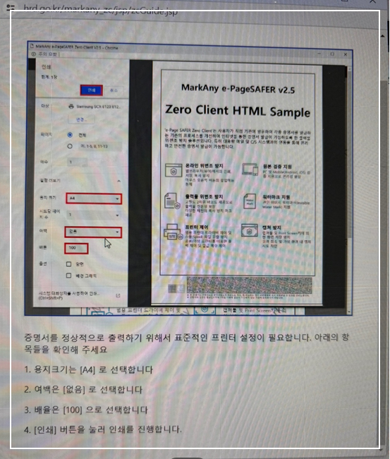 이때 내일 배움 카드 발급 신청서 출력할 때 주의사항이 여백 없음으로 하셔야 한다는 것을 주의하시기 바랍니다.