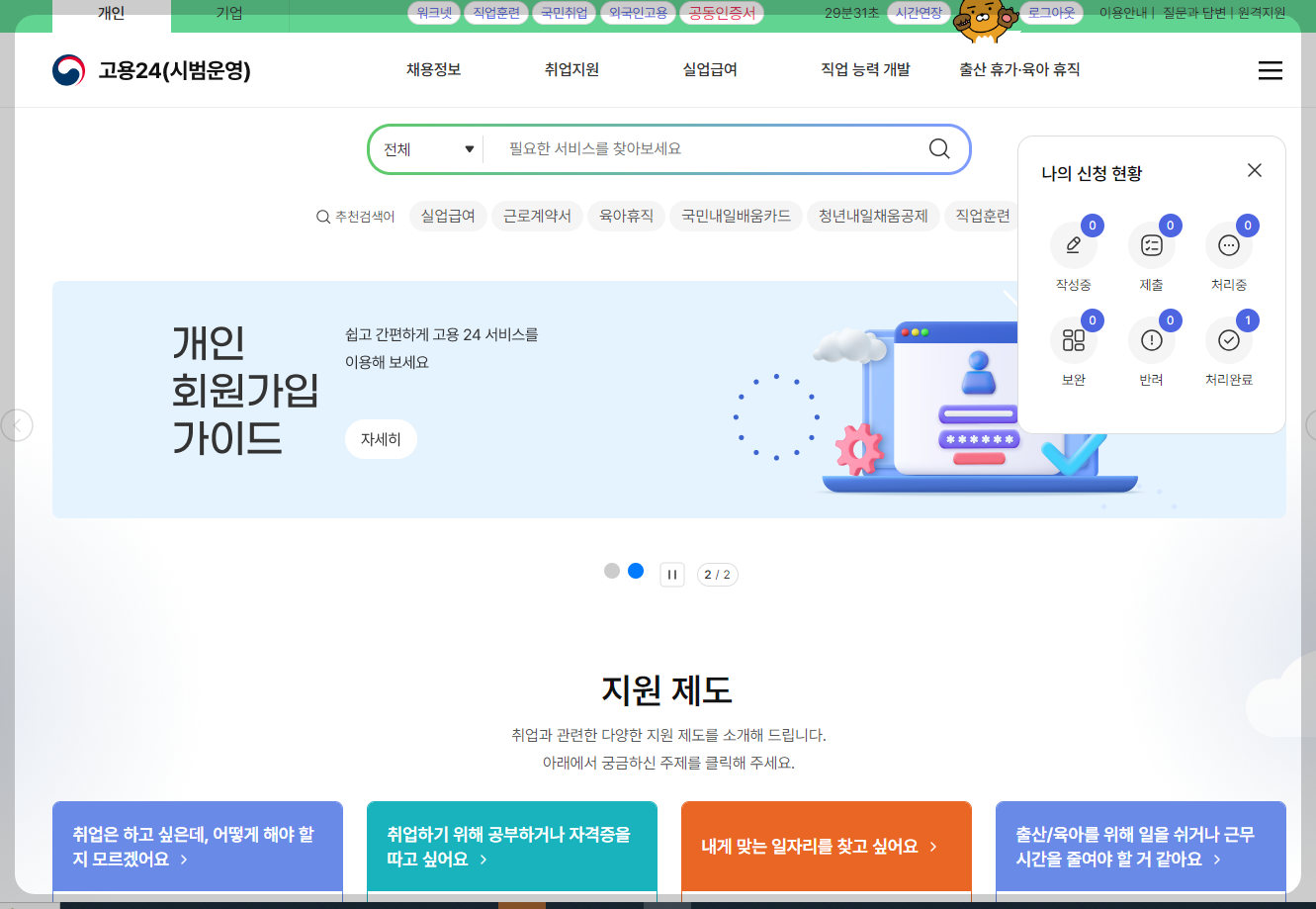 이 과정을 하시기 전에 선행할 것은 실직자라면 워크넷에서도 간단한 이력서 작성과 구직등록을 하셔야 합니다.